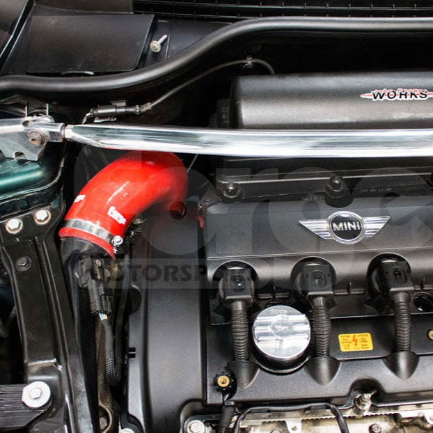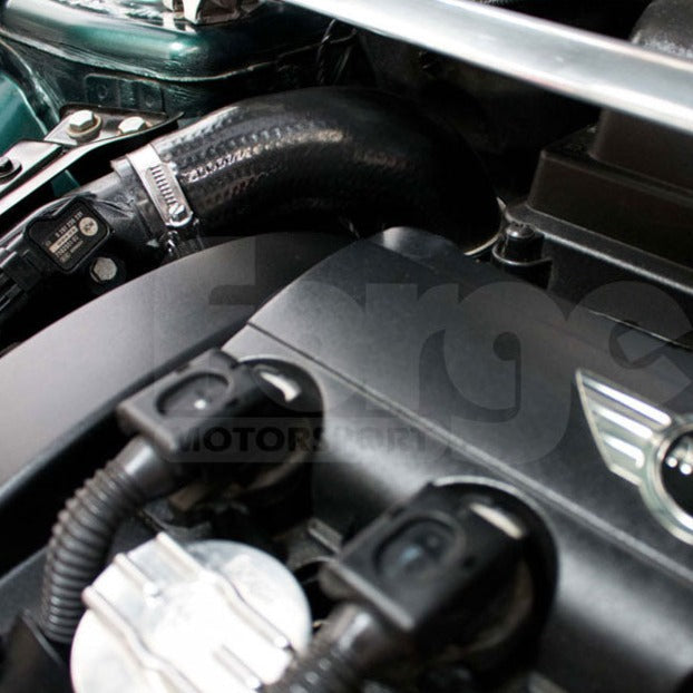 This Forge Motorsport high flow intake charge hose fits to the throttle body at the rear of the engine bay and is specifically designed to fit the Mini Cooper 1.6 Turbo. (See compatibility list below). The standard hose can be restrictive and more so with earlier models that contained a noise generator. Installed on the cold side, this free flowing hose improves turbo response throughout the rev range. The re-enforced silicone structure will withstand greater temperatures and pressures than the original hose and is ideal for tuned engines.